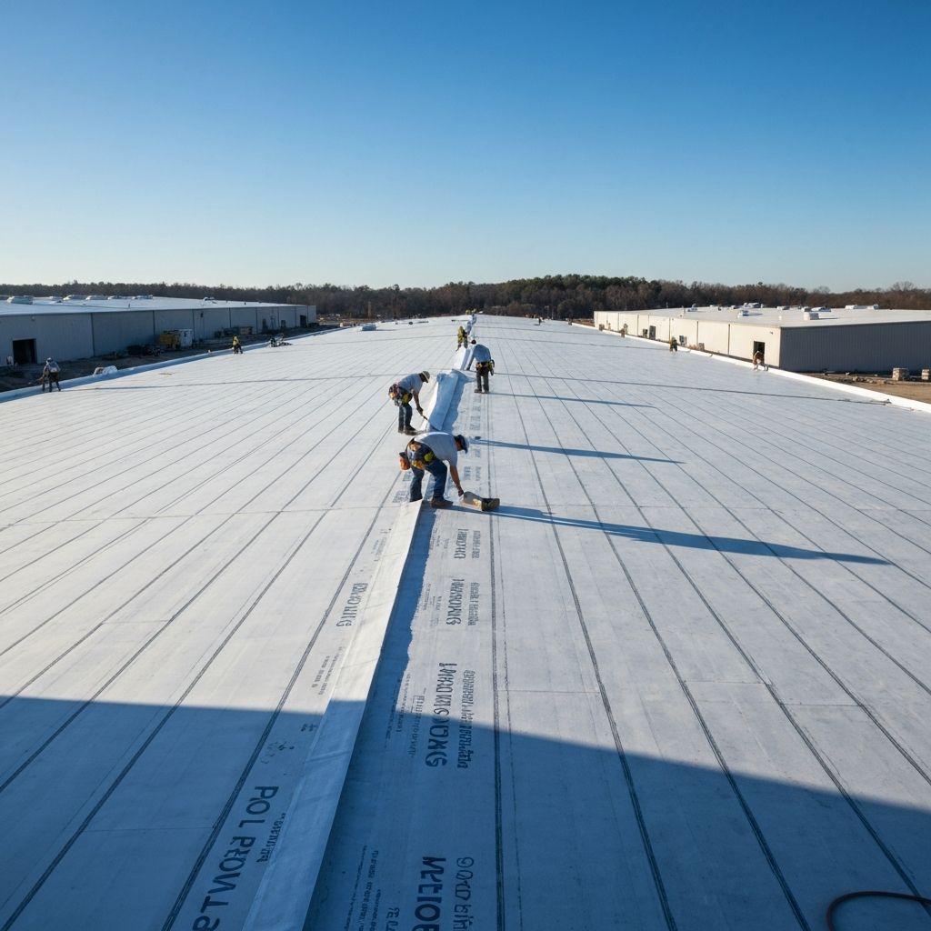 White reflective membrane that lowers cooling costs, resists UV damage, and delivers 20+ year performance. Most popular choice for modern commercial buildings.